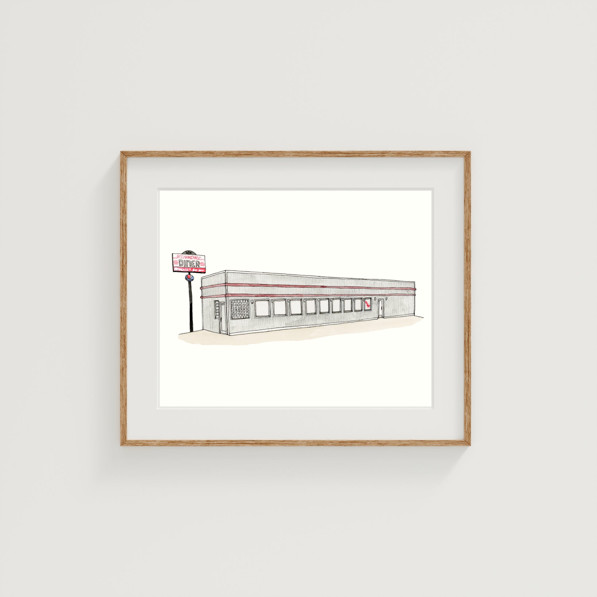 Fine art print of Kenmore Diner in Worcester, originally created with watercolor and ink.