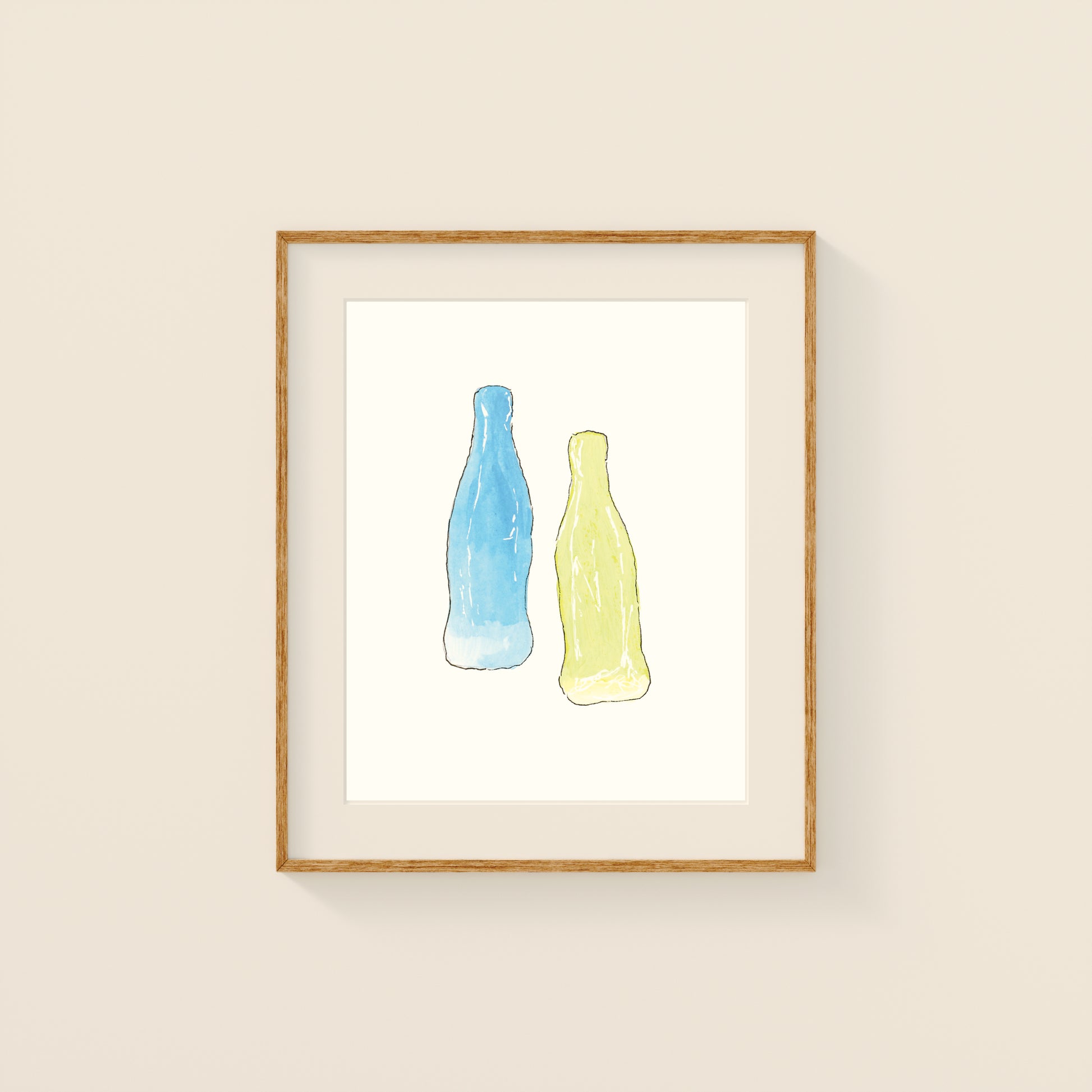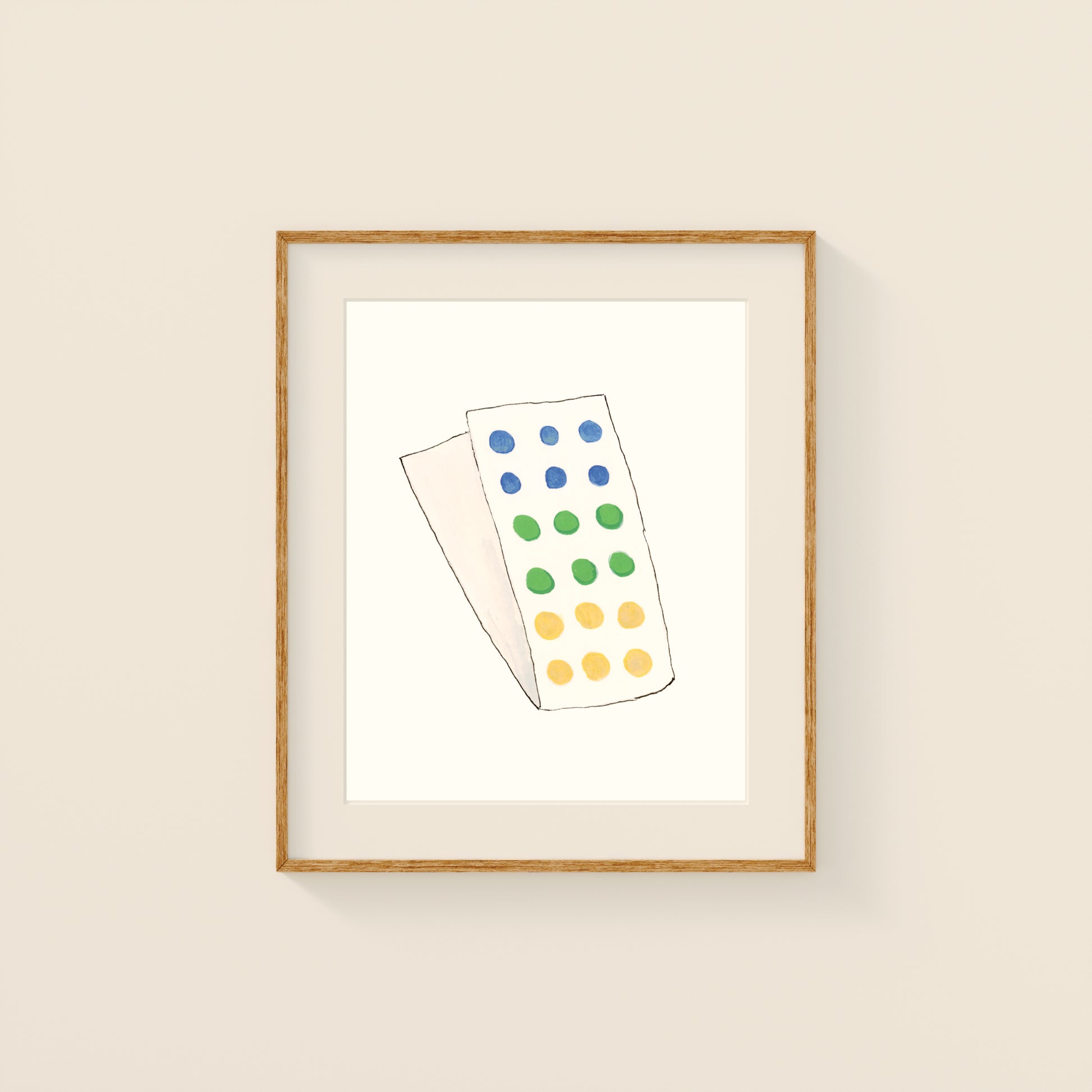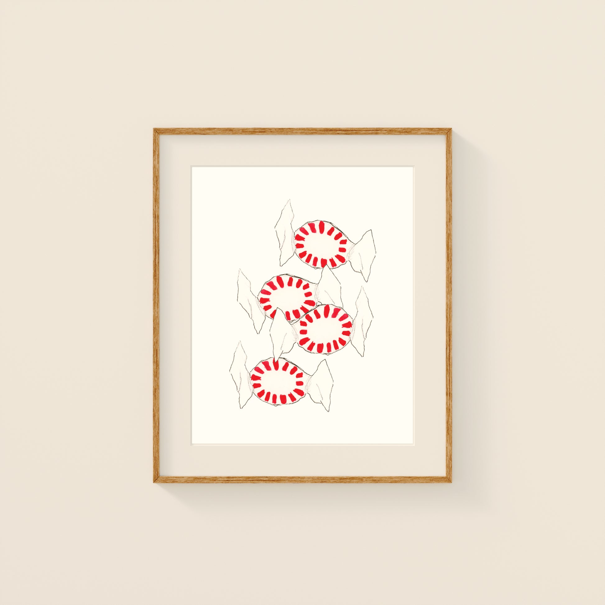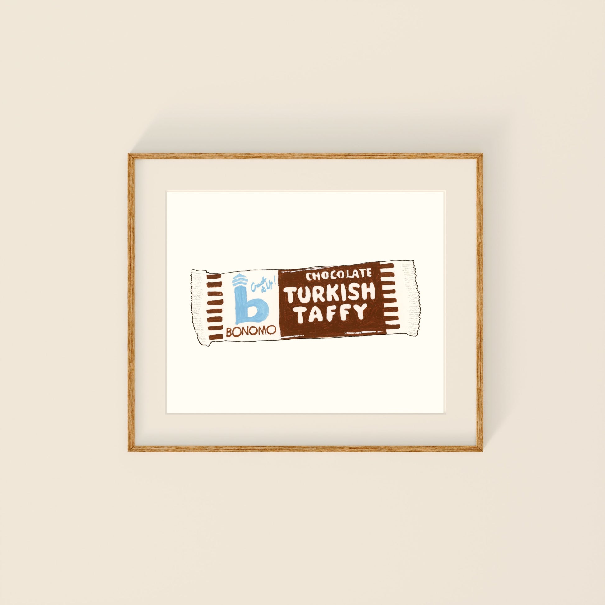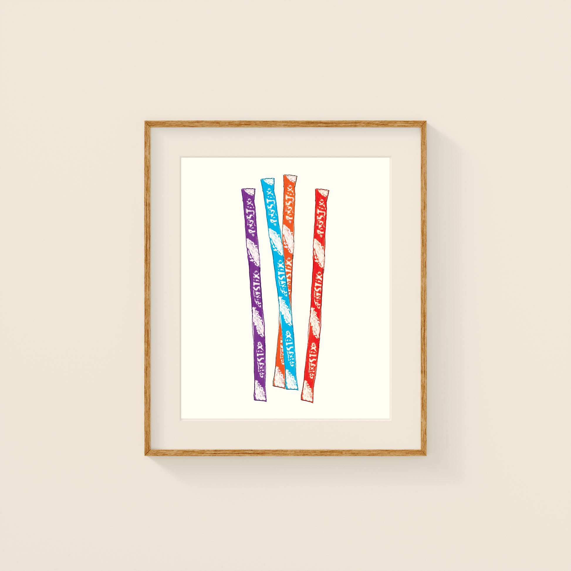 Mini art p rints of individual illustrations from my retro candy print! Each print measures approximately 4"x5". You can add on a white mat board so that your print is ready to pop into a 5"x7" frame (example shown in first photo).